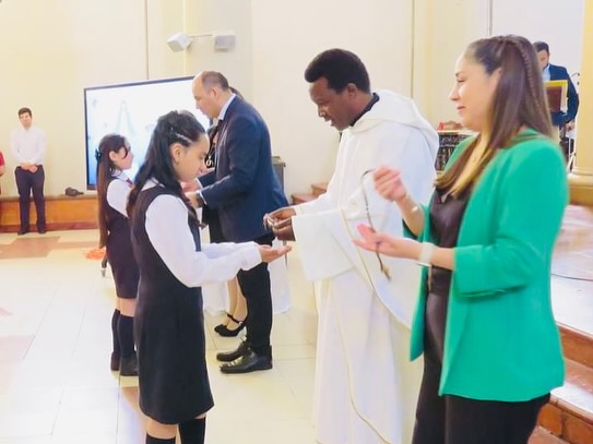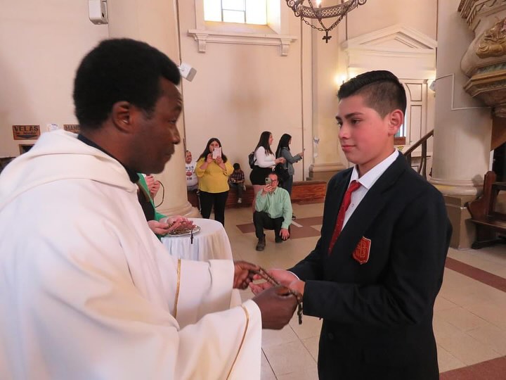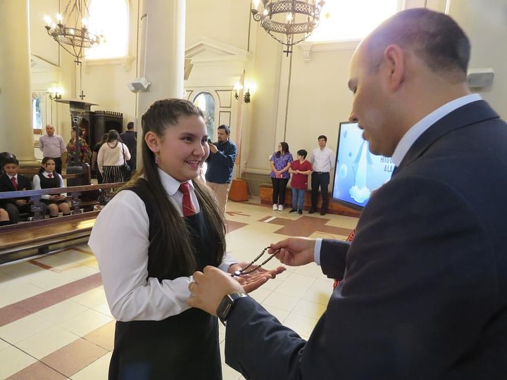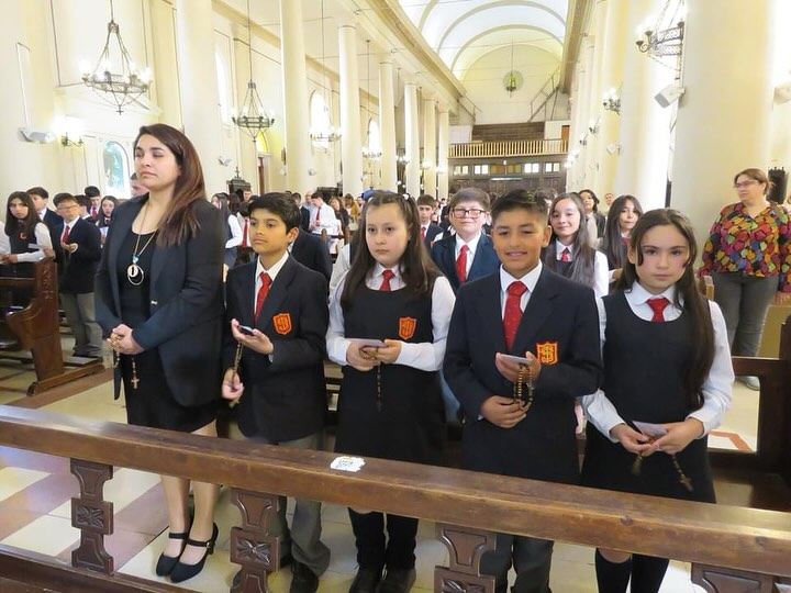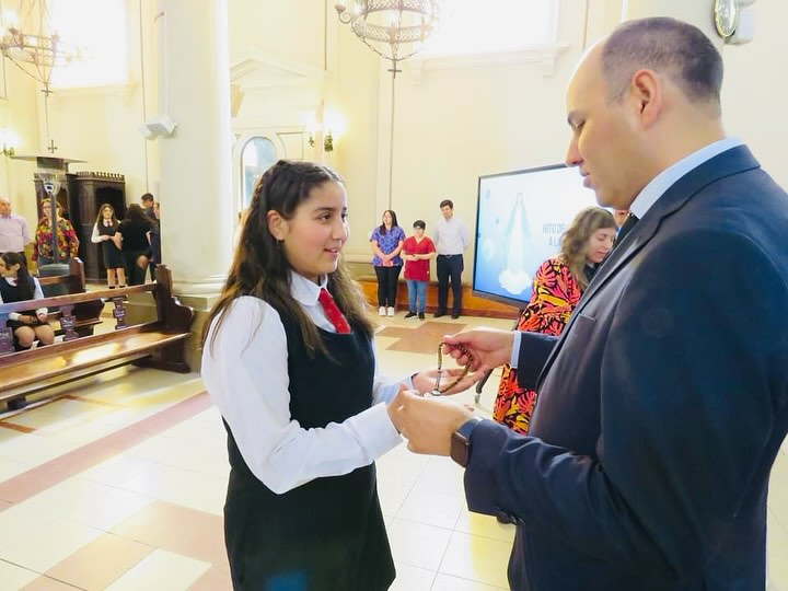 Con gran alegría, el miércoles 13 de noviembre celebramos la misa de Hito de Consagración a la Virgen María, en la que estudiantes de 6° año básico, acompañados por sus apoderados y profesoras, participaron de una eucaristía en la que recibieron el signo del Rosario, bendecido por nuestro capellán, el Padre Mario Francis Umar. ¡Pidámosle a María que acompañe a cada uno de estos alumnos y alumnas y los guíe hacia Jesús! 🩵